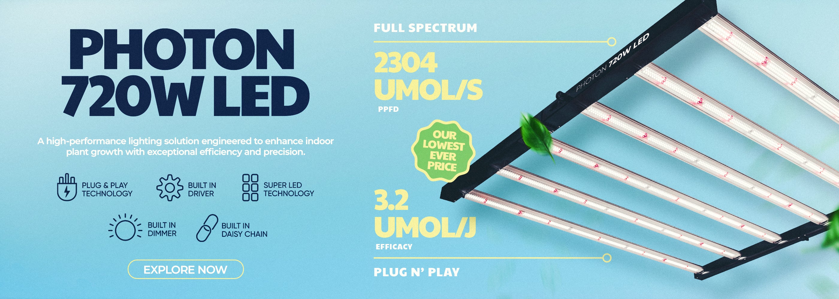 A cutting-edge solution designed to enhance plant growth with exceptional efficiency and performance. This advanced full-spectrum LED replicates natural sunlight, delivering the optimal light spectrum to support all stages of plant development, ensuring faster growth, healthier plants, and maximum yields. Its integrated driver offers a sleek, compact design for easy installation and reliable operation, making it adaptable to a wide range of growing environments.