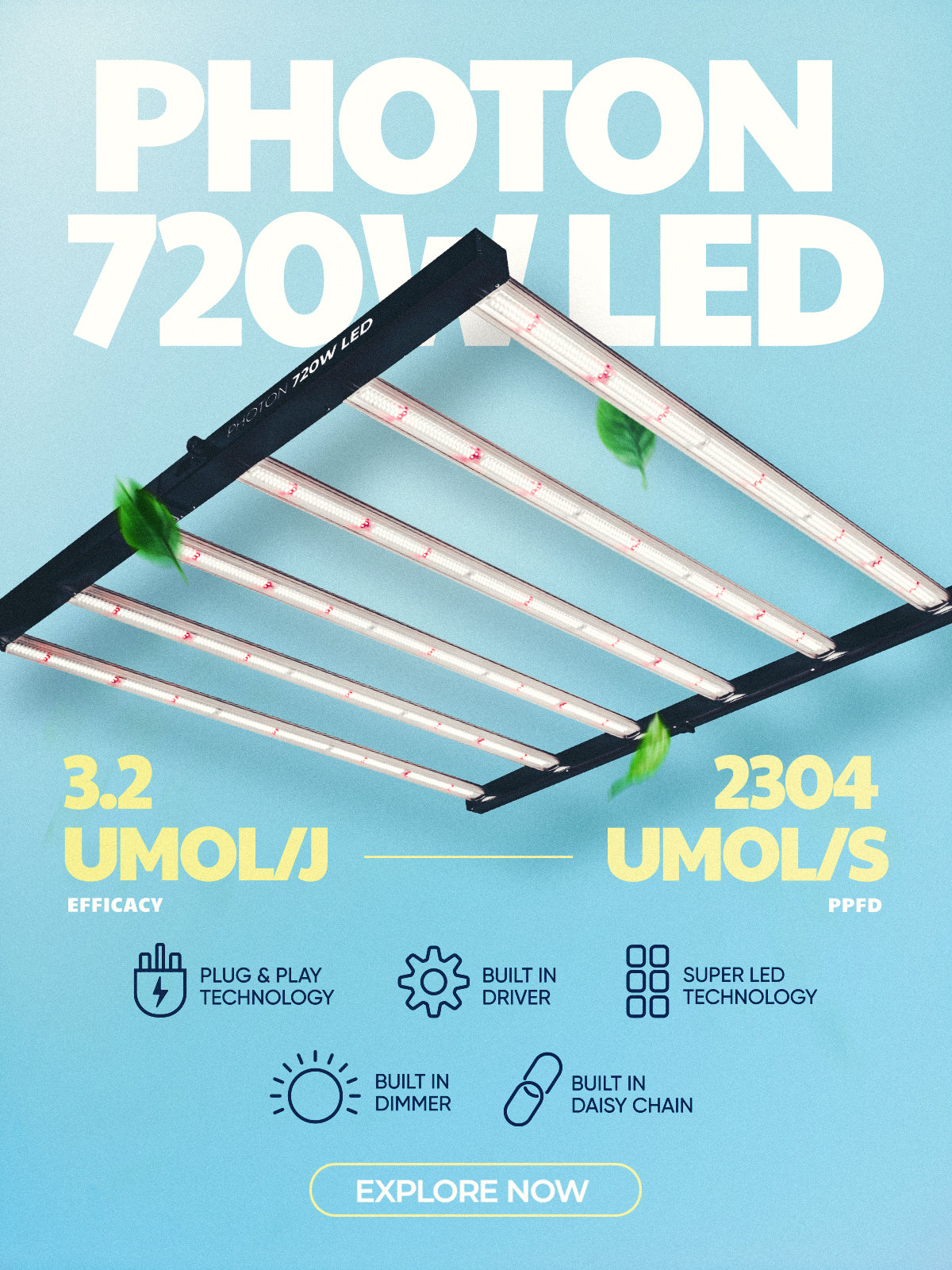 A cutting-edge solution designed to enhance plant growth with exceptional efficiency and performance. This advanced full-spectrum LED replicates natural sunlight, delivering the optimal light spectrum to support all stages of plant development, ensuring faster growth, healthier plants, and maximum yields. Its integrated driver offers a sleek, compact design for easy installation and reliable operation, making it adaptable to a wide range of growing environments.